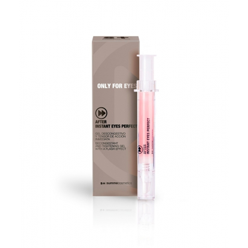Gel contorno de ojos con acción descongestiva y tensora, reduce el volumen de las bolsas de los ojos y la profundidad de las arrugas. Resultados visibles en pocos minutos. Repara al instante los signos de fatiga y cansancio, además difumina las imperfecciones, revitalizando la mirada. No apto para uso diario.