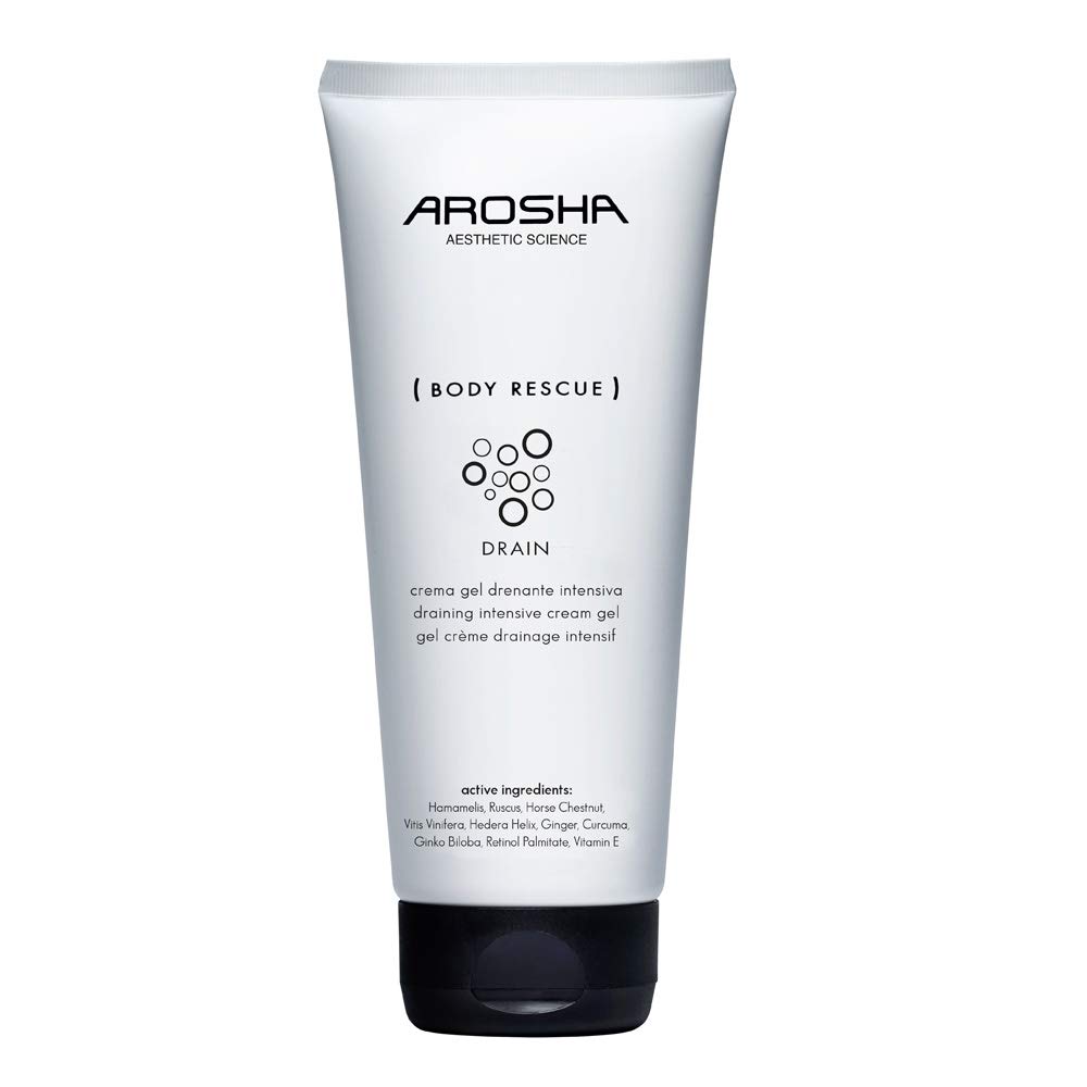 Arosha Body Rescue Drain es un gel ligero, no graso, formulado con principios activos con propiedades drenantes y vasotónicas que ayudan a mejorar la microcirculación de la piel y favorecen en el drenaje del exceso de líquido.