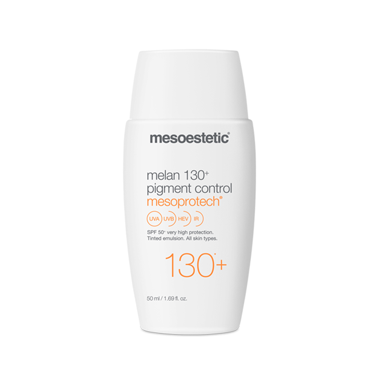 Protección solar muy alta indicada para pieles con imperfecciones pigmentarias. Testada frente a UVB de 131 y 67 UVA, doblando la protección mínima exigida en fotoprotectores 50+. Regula la síntesis de melanina previniendo de esta manera las manchas por el sol. Su textura con color aporta un tono natural. Es resistente al agua.